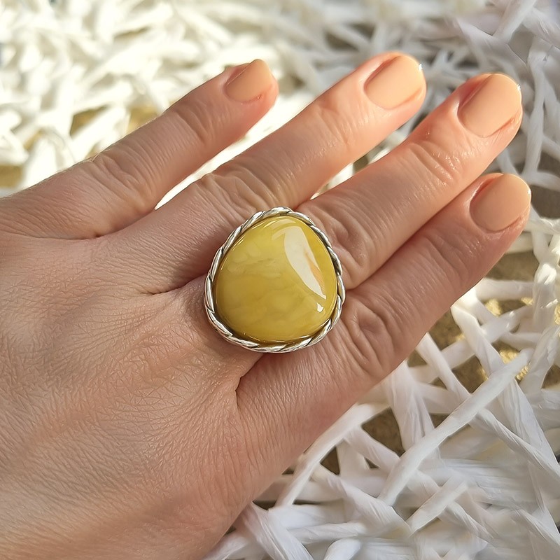 Beautiful sterling silver amber ring with milky amber created in Amber Pol's workshop in Sopot.