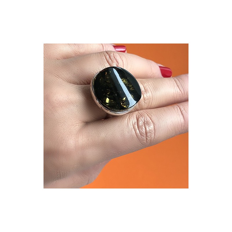 Natural Baltic amber 925 sterling silver ring in a beautiful green colour. Hand made for you in our workshop.