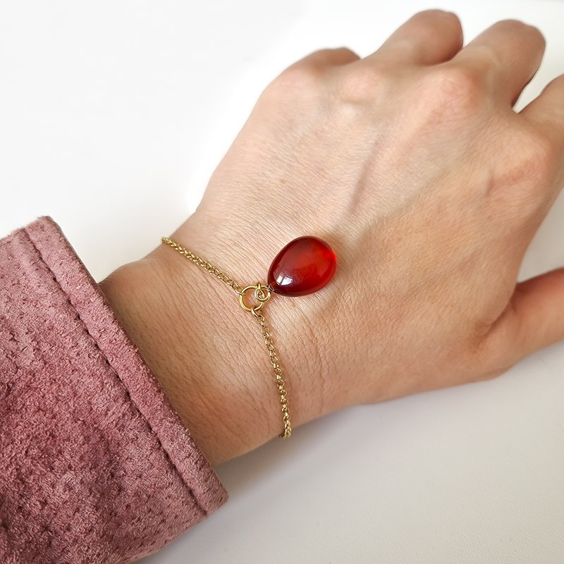 Fashionable gold plated sterling silver bracelet with beautiful cherry amber. Ideal to your autumn outfits.