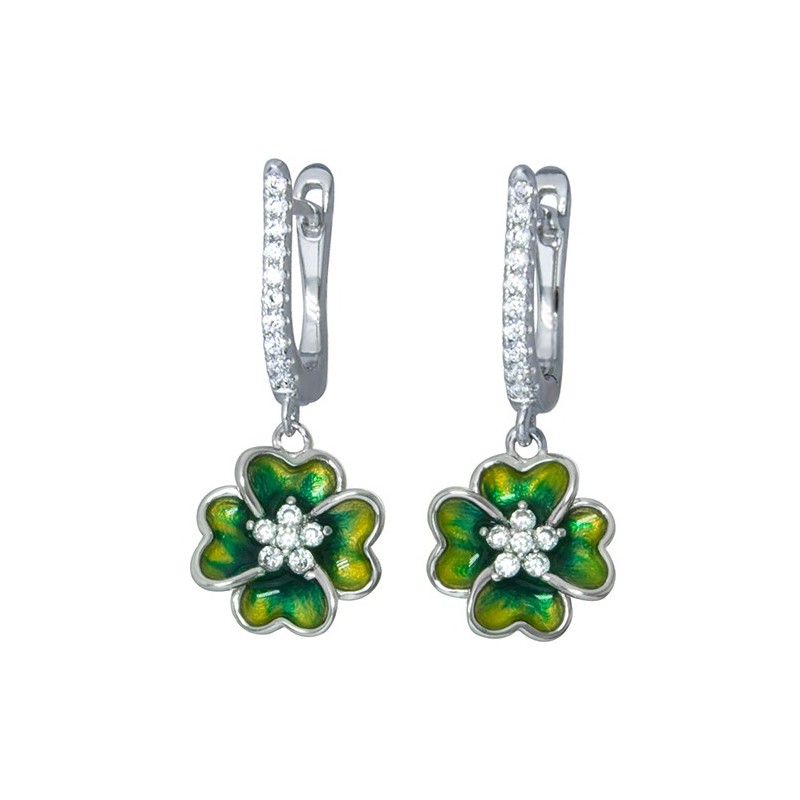 Sterling silver enamel and zirconia flower earrings