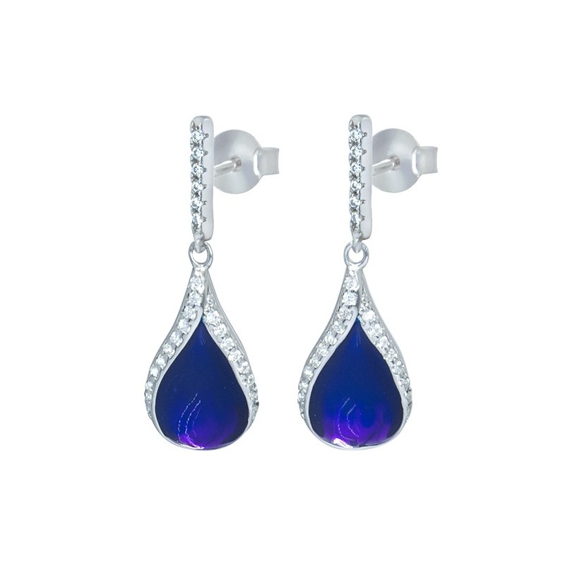 Sterling silver zirconia and enamel hand painted earrings