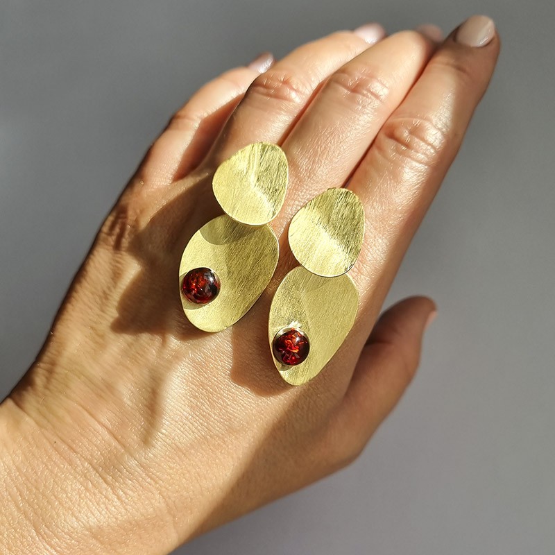 Fashionable gold plated sterling silver earrings with beautiful cognac amber. Ideal to your autumn outfits.