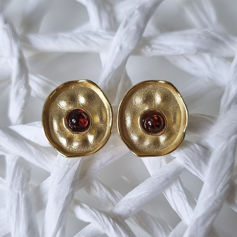 Fashionable gold plated sterling silver earrings with beautiful cognac amber. Ideal to your autumn outfits.