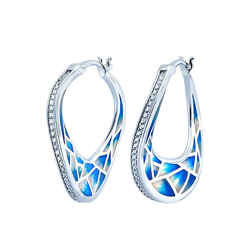 Sterling silver zirconia and enamel hand painted earrings
