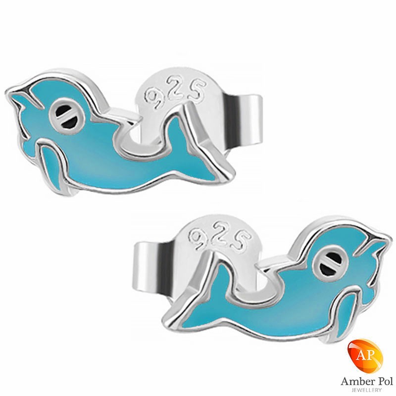 Beautiful sterling silver enamel dolphin earrings. Great idea for a gift. Children will love them.