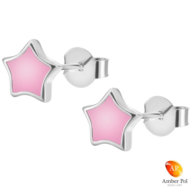 Beautiful sterling silver enamel star earrings. Great idea for a gift. Children will love them.