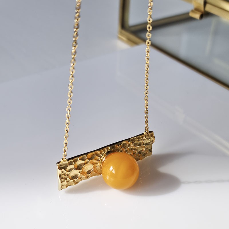 Sterling silver gold plated amber necklace