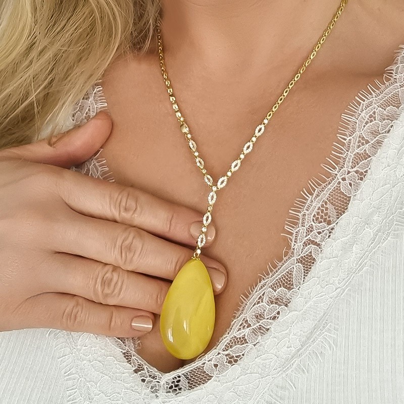 Beautiful 24k gold plated sterling silver necklace with milky amber and shiny zirconia. The amber is in a wonderful milky colour.