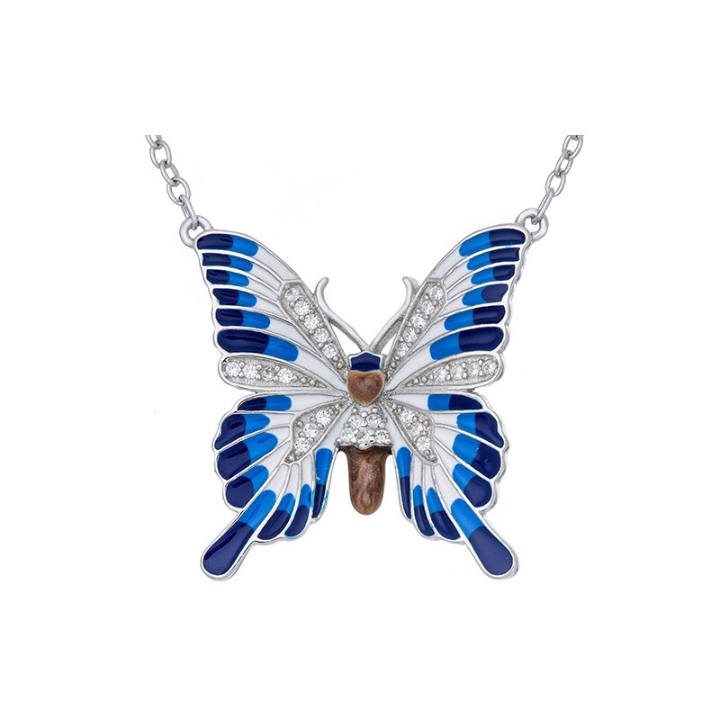 Sterling silver enamel and zirconia butterfly necklace