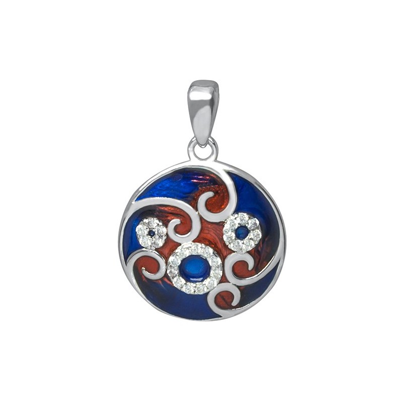 Sterling silver zirconia and enamel hand painted pendant