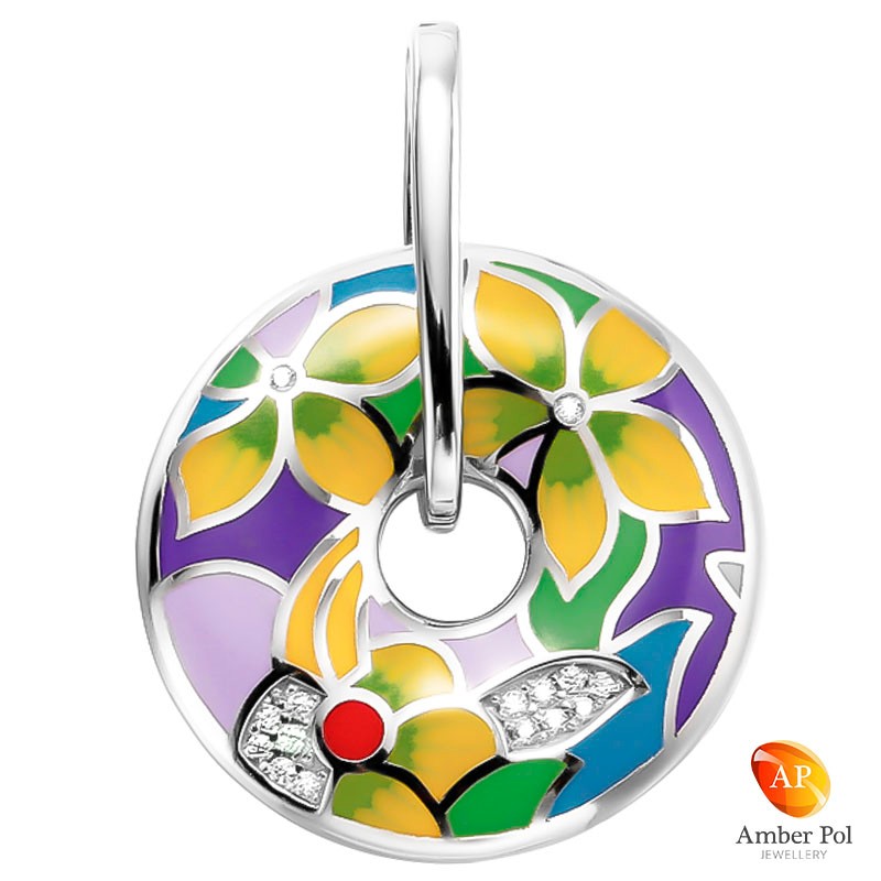 Beautiful sterling silver enamel pendant in shades of green, blue and yellow. Will make you think of summer and summer wind in the trees.